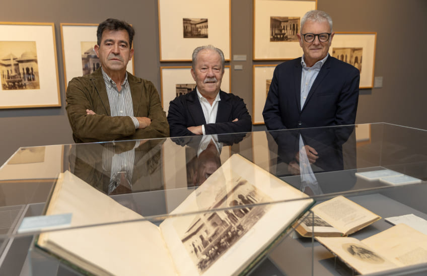 FotoManuel Castells/Museo Universidad de Navarra/Javier Piñar y Carlos Sánchez, comisarios de la muestra, junto a Valentín Vallhonrat, adjunto al director del MUN.