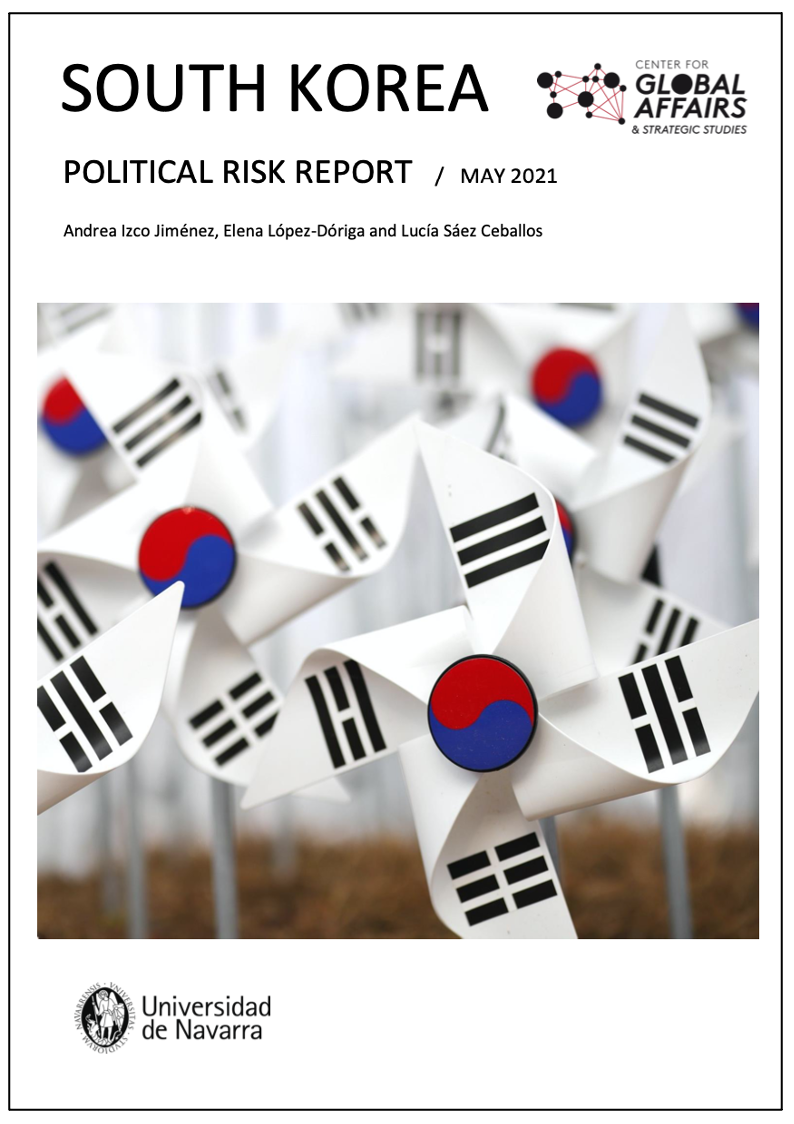 Thirdly, in the Political Outlook we see how South Korea’s democracy faces issues concerning the powerful executive connected to a crony capitalism system in which Chaebols have been related to political scandals in the last administrations. However, in the short-term, the government will focus on resolving socio-economic issues rather than taking system reforms, as a new form of populism is emerging claiming for solutions for inequalities and damage caused by modernity. Despite of the little economic progress carried out by the current administration under President Moon, it is likely that his party will win again the next presidential elections in 2022 thanks to the well management of the COVID-19 crisis.